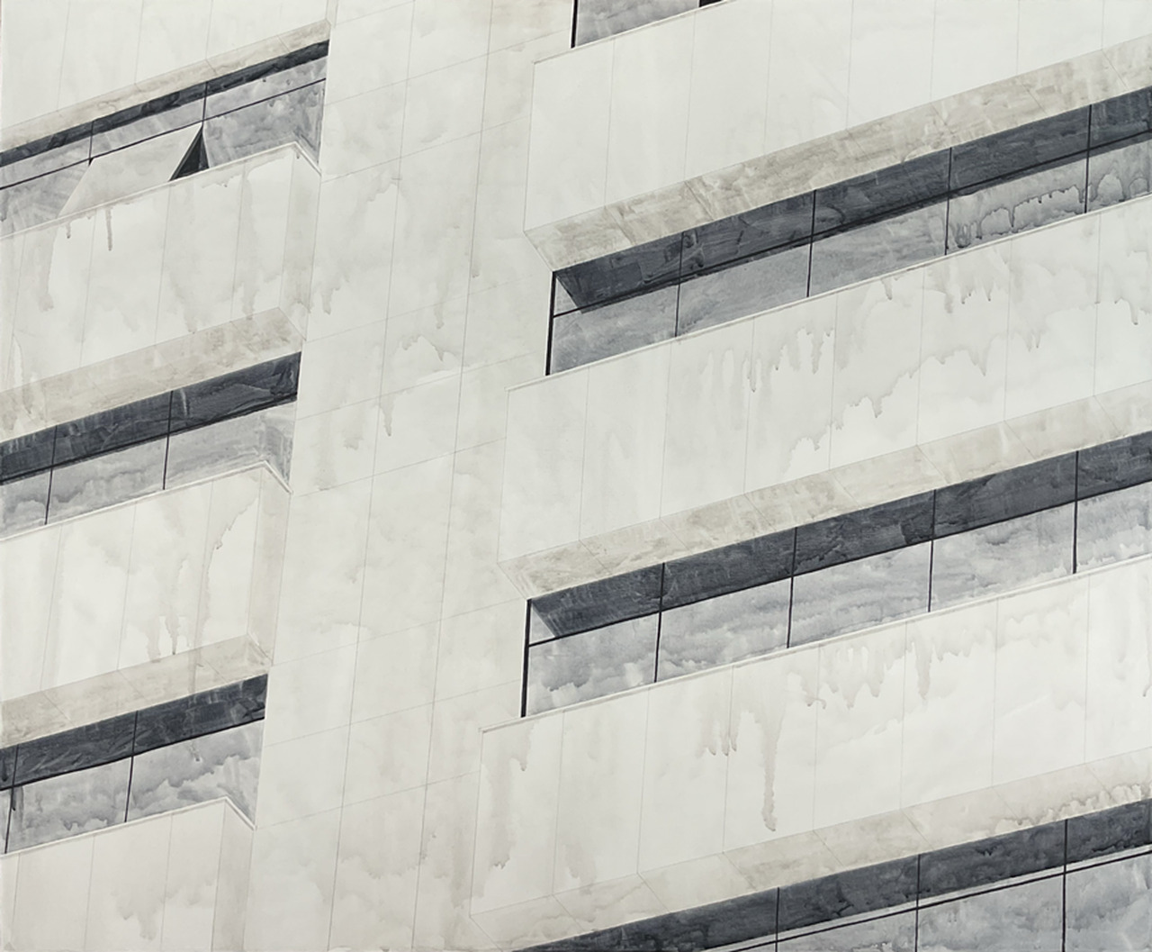A pesquisa nasce a partir de uma observação da cidade de Belo Horizonte, onde a artista reside desde 2019. Em contato com o centro urbano, emerge o desejo de representar esse ambiente austero e ermo. Como fala Didi-Huberman em O Que Vemos, O Que Nos Olha, “devemos fechar os olhos quando o ato de ver nos remete, nos abre a um vazio que nos olha, nos concerne e, em certo sentido nos constitui.” As obras convidam o espectador a observar esse vazio que nos encara e que nos atravessa intensamente.