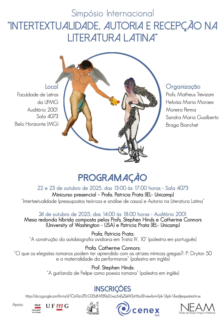 O evento conta com o apoio do NEAM – Núcleo de Estudos Antigos e Medievais -, do Pós-Lit – Programa de Pós-Graduação em Letras: Estudos Literários – e da Fale.