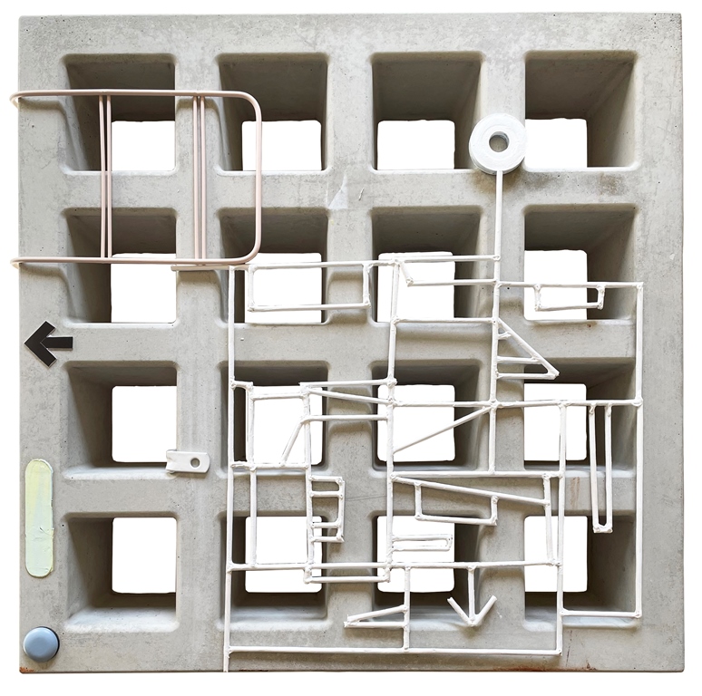 Essas “cidades habitantes” propõem um jogo interminável de alegorias e aproximações, funcionando como Eros e Caos: forças opostas e complementares. O geometrismo, sustentado pela linha e pelo desenho, contrapõe-se ao gesto livre, traduzindo a impermanência do tangível e representando o incessante trabalho de construção e desconstrução. Nessas cidades, o passado permanece visível enquanto o futuro se insinua, redesenhando-se constantemente.