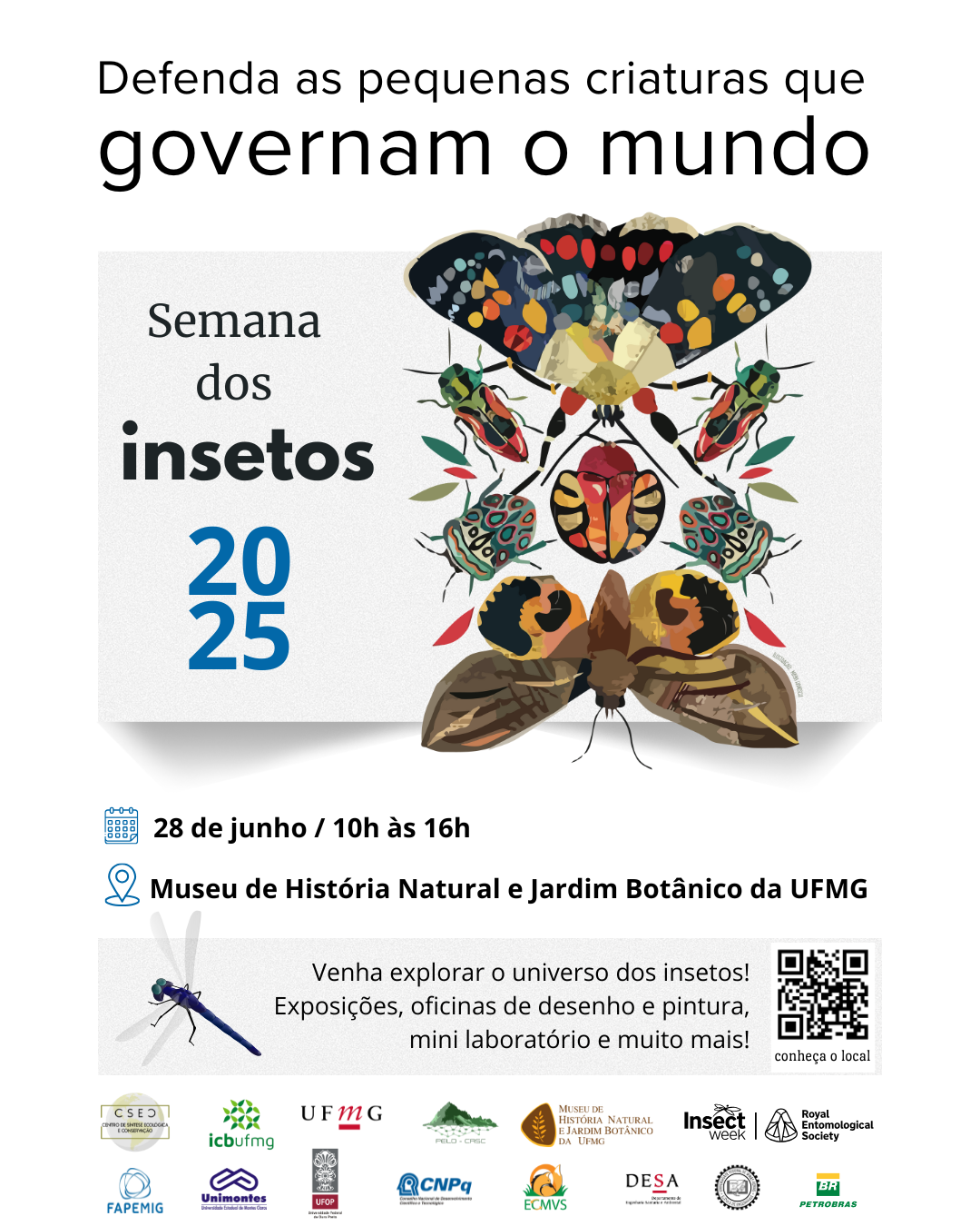 Com o tema Defenda as pequenas criaturas que governam o mundo, a Semana dos Insetos 2025 no Museu de História Natural e Jardim Botânico (MHNJB) da UFMG promete uma programação divertida para todas as idades, no próximo sábado, dia 28 de junho, das 10h às 16h. O objetivo é celebrar e mostrar a importância vital dos insetos para o equilíbrio do ecossistema. E o melhor: todas as atividades são gratuitas!