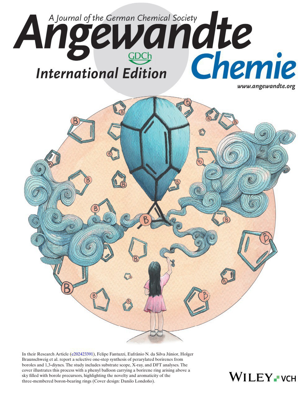 A capa desta edição, encomendada aos autores do artigo, ilustra o processo com um balão fenílico que carrega um anel de borireno elevado acima de um céu preenchido com precursores de borol, o que chama a atenção para a novidade e a aromaticidade dos anéis de três membros contendo boro. “A ciência ilustrada de forma mágica, guiada por uma criança, reflete a alegria da descoberta e a curiosidade infinita que move o ser humano”, conclui Eufrânio Júnior.