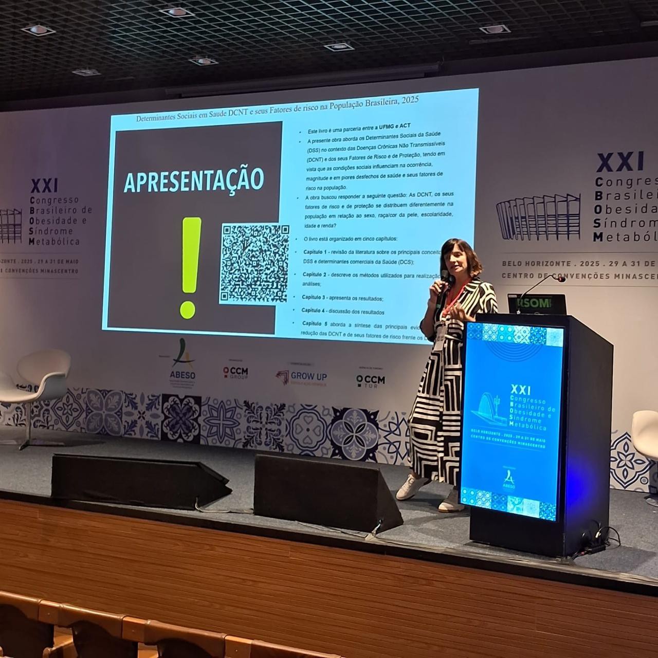 A professora Deborah Carvalho Malta, do Departamento de Enfermagem Materno-Infantil e Saúde Pública da Escola de Enfermagem da UFMG, lançou, no último sábado, dia 31 de maio, o e-book Determinantes sociais em saúde e seus fatores de risco e de proteção na população adulta brasileira, em parceria com a ACT Promoção da saúde, uma organização não governamental que atua na promoção e defesa de políticas de saúde pública. O lançamento ocorreu durante o XXI Congresso Brasileiro de Obesidade e Síndrome Metabólica, realizado de 29 a 31 de maio, no Centro de Convenções do Minascentro, em Belo Horizonte.