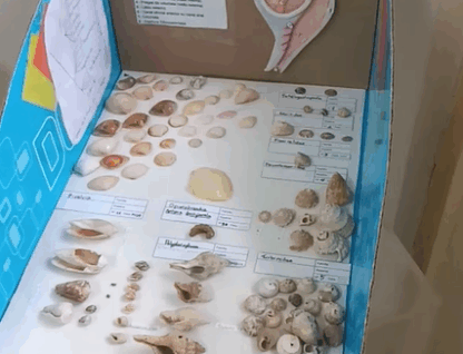 Mostra inclui conchas, partes moles e materiais didáticos utilizados no Laboratório de Malacologia do ICB