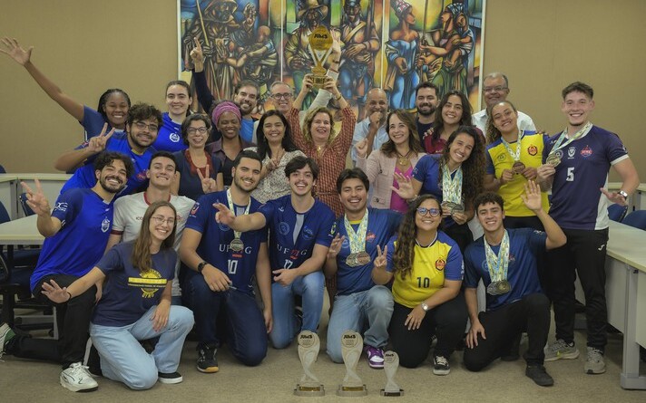 ESPORTE Atletas que representaram a UFMG nos Jogos Universitários Mineiros são recebidos na Reitoria