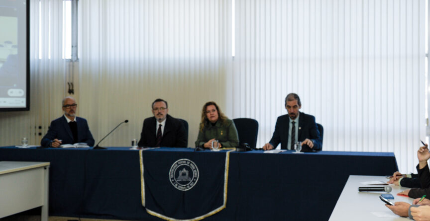Os principais pontos do documento referência da iniciativa Extensão em Participação Social foram apresentados em reunião com dirigentes de universidades na manhã desta terça, 8, no campus Pampulha. A exposição foi feita pelo secretário nacional de Participação Social da Secretaria-Geral da Presidência da República, Renato Simões. Ele e os outros participantes do encontro foram recebidos pela reitora Sandra Regina Goulart Almeida e pelo pró-reitor de Extensão, Glaucinei Rodrigues Corrêa.