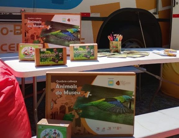 Em parceria com o MHJB, o projeto Carro-Biblioteca lançou kit de quebra-cabeças, dominó sobre animais brasileiros em extinção e jogo da memória sobre reciclagem