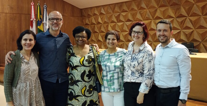 Nilma Lino Gomes, ao centro (vestido estampado), com gestores da política de formação docente da UFMG