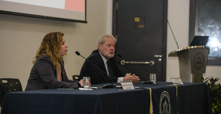 Sandra Goulart Almeida e Carlos Aragão durante a palestra