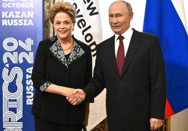 Presidente da Russia Vladimir Putin a ex-presidente brasileira Dilma Rousseff, indicada por ele para um novo mandato à frente do NDB
