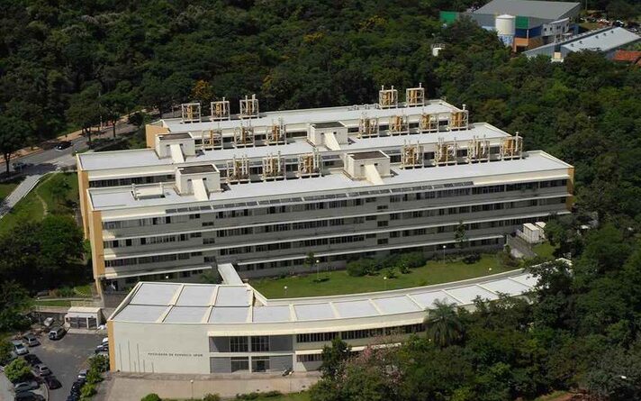 Vista aérea do prédio da Faculdade de Farmácia, sede do Programa de Pós-graduação em Ciência de Alimentos