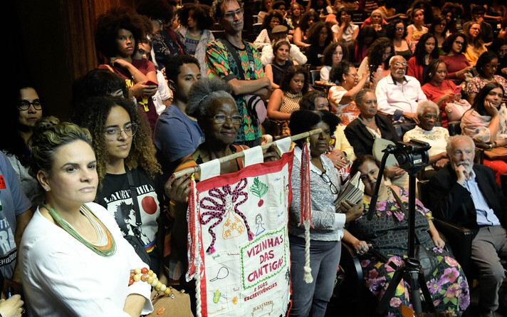 Conceição Evaristo recorreu a seu personagem Luandi Vivêncio, irmão da protagonista da obra Ponciá Vivêncio, para destacar que a trajetória de qualquer pessoa nunca é feita sozinha. “Luandi sabia que não bastava escrever a sua letra e o seu nome, pois atrás de sua assinatura deveria haver a assinatura de todo um povo. Não tenho dúvida de que só cheguei aqui porque minha tia, passeando comigo quando eu era pequena, me contava muitas histórias. E foram as vozes de mulheres negras, como a minha tia, que despertaram em mim este estado de assuntar o mundo”, explicou.