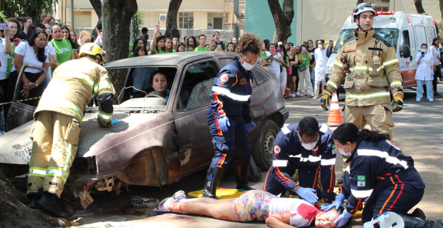 A Escola de Enfermagem da UFMG promove nesta quinta-feira, dia 18, uma simulação de atendimento a vítimas de acidente de trânsito como parte da campanha Desacelere. Seu bem maior é a vida, da Semana Nacional de Trânsito (SNT) 2025. A atividade, que será realizada no estacionamento do campus Saúde, começa às 12h e terá participação do Samu de BH e do Corpo de Bombeiros Militar de Minas Gerais (CBMMG).